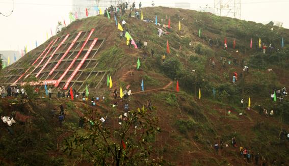 师生植树壮观场景